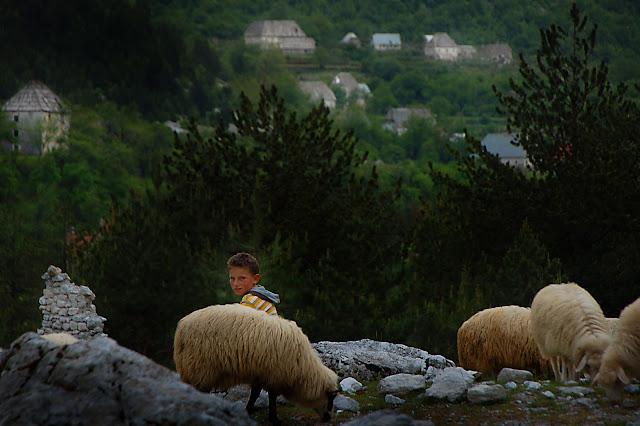 Theth, dicevo, un minuscolo villaggio di poche case lassu’, in una valle sperduta tra i Monti Cursed (Bjeshket e Namunad) delle Alpi albanesi,regno di vasti pascoli e foreste sempreverdi di faggi e larici e di vette che superano i 2000 metri, dove le donne lavorano ancora i kilim e i tappeti sugli antichi telai e disegnano figure, tramandate da madre a figlia, che si perdono nella preistoria.