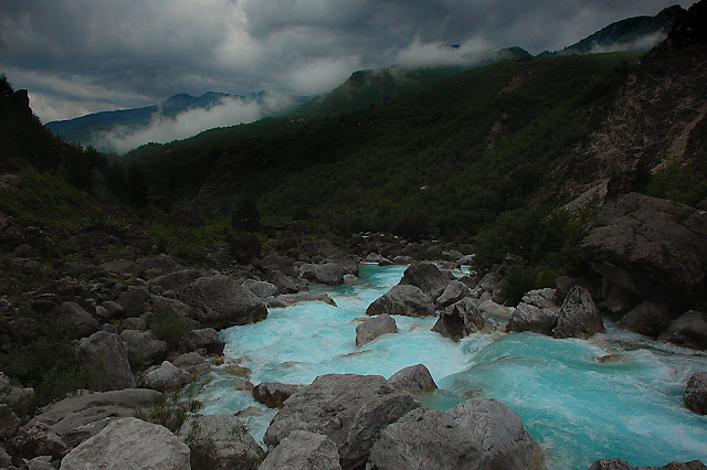 Cala la sera sulla valle di Theth ed i colori vanno spegnendosi lentamente;