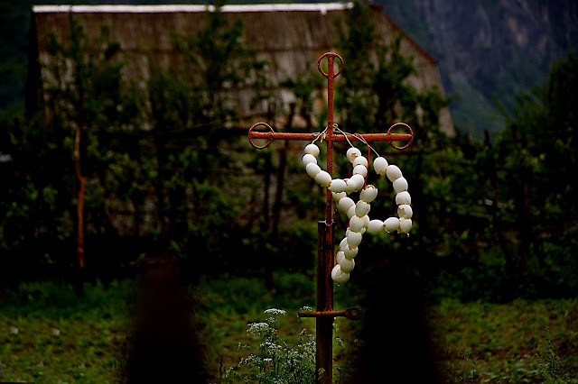 Da questo punto la strada comincia a farsi impervia e ad arrampicarsi sulle montagne,il cielo tetro e le genti in nero per il rito funebre con il loro silenzioso mormorio quasi ascetico non fanno che dare al momento un tono di sacralita’;